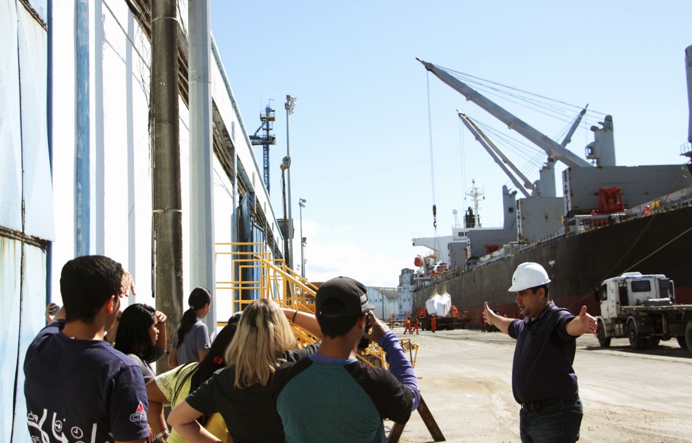 A aula prática teve como objetivo apresentar aos estudantes um pouco da realidade cotidiana que ocorre nas operações de embarque e desembarque de cargas, ou seja, o armazenamento dos produtos nos armazéns, a movimentação entre os navios e o cais e a liberação dos caminhões para fora da área portuária. O coordenador de operações explicou também sobre a operação com big-bag (saco resistente para transportar granéis) que estava ocorrendo no momento da visita em um navio que transportava barrilha (produto usado para fabricação de vidro, sabão, entre outros).