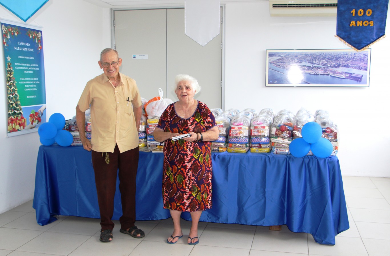 Os funcionários do Porto do Recife entregaram nesta segunda (17), 49 cestas básicas para a Paróquia Sagrado Coração de Jesus de Águas Compridas – Olinda. A campanha “NATAL SEM FOME” foi idealizada por Ednalda Oliveira de Andrade (Gerente de Estatística do Porto) há seis anos. Desde então a campanha segue assente com a ajuda especial de Edna Xavier (lotada na Gerência de Operações) e dos funcionários que contribuem todos os anos para garantir alimentos no Natal dessas famílias em vulnerabilidade social. A entrega foi feita pelos empregados do Porto para o senhor Isaac Leon Braun e sua esposa Maria do Perpetuo Socorro Aquino Braun, que são os responsáveis pela distribuição das cestas nas comunidades carentes. Na ocasião foi rezado o “Pai Nosso” e louvores a Deus. “O verdadeiro espírito de Natal é a generosidade e o amor. Queremos agradecer a vocês por mais uma vez contribuírem conosco nessa data tão importante”, agradece o Senhor Isaac.