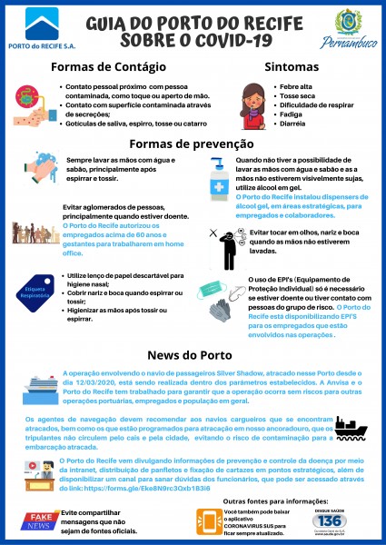 A prevenção é a melhor proteção para você, sua família e a sociedade. O Porto do Recife preparou um panfleto com as melhores dicas para esse período de de pandemia do Covid-19:
