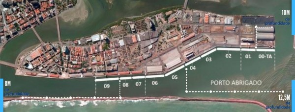 Com o serviço de desassoreamento, os berços do Porto do Recife vão ter às seguintes profundidades: